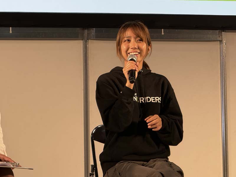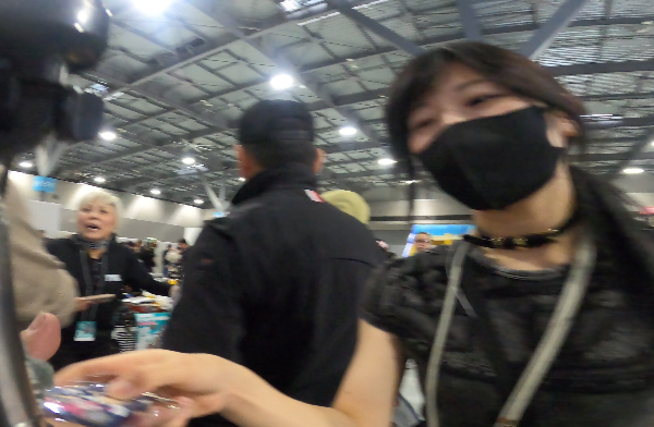 私も持っている「insta360」のブースに寄って気になる機種の相談やリモコン等の質問をして、なんとなく解決したところで近所を見るとさっきステージに居た「岡崎静夏」さんが大垣ブースに居る!!